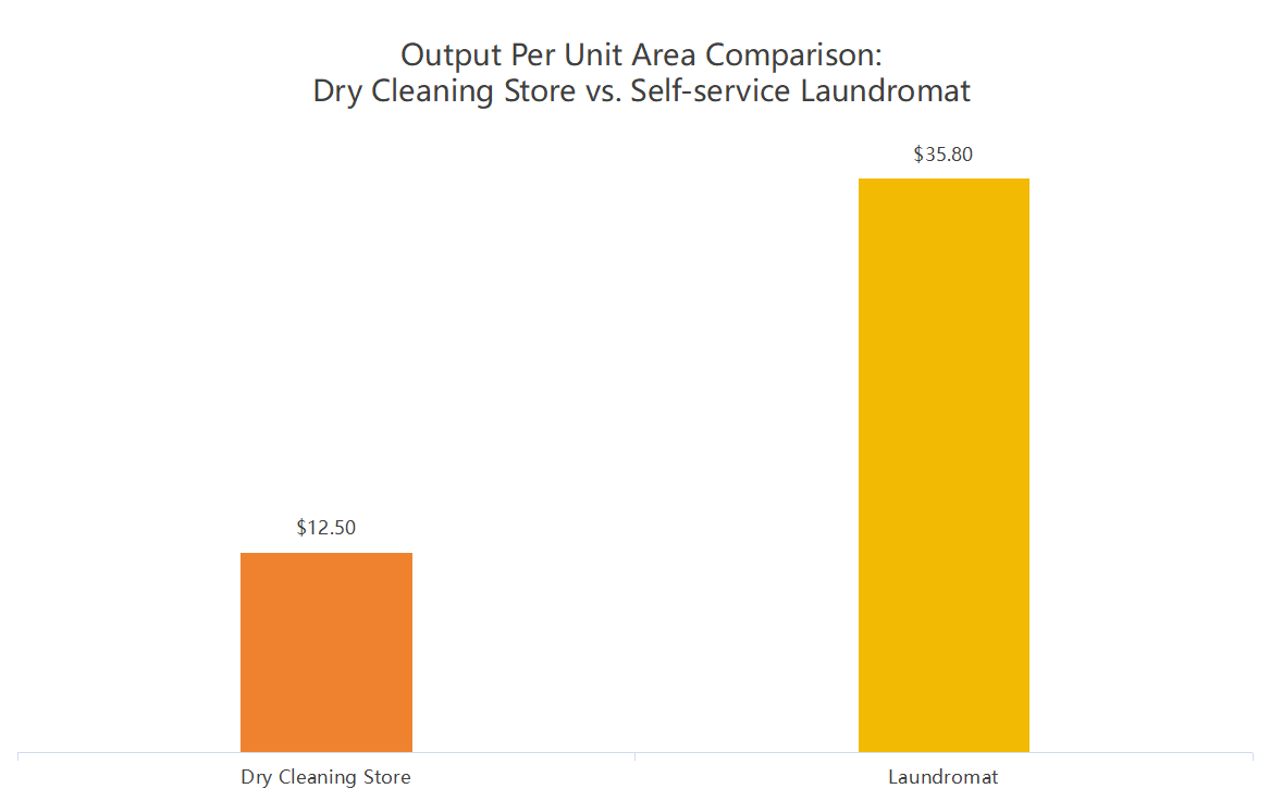Autoservire spălătorie : 35,8 USD pe metru pătrat (venit lunar de 10.750 USD pentru un magazin de 30 de metri pătrați)